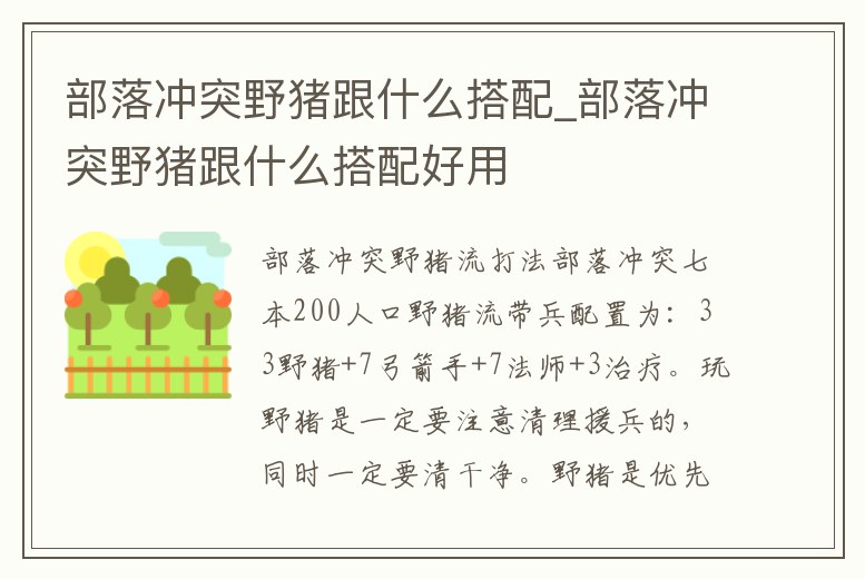 - 部落沖突野豬跟什么搭配_部落沖突野豬跟什么搭配好用