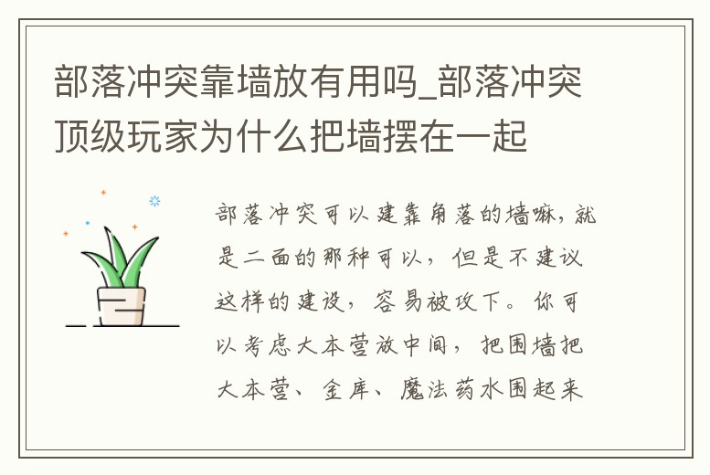 部落沖突靠墻放有用嗎_部落沖突頂級玩家為什么把墻擺在一起