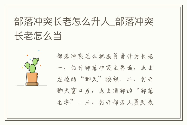 部落沖突長老怎么升人_部落沖突長老怎么當
