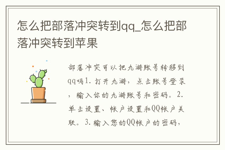 部落沖突可以把九游賬號轉(zhuǎn)移到qq嗎