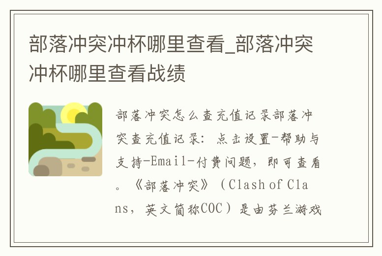 部落沖突查充值記錄:點擊設置-幫助與支持-Email-付費問題,即可查看。《部落沖突》(Clash of Clans,英文簡稱COC)是由芬蘭游戲公司Supercell Oy開發的一款塔防類的策略手游,該作于2015年9月24日正式公測。游戲講述了各部落。
