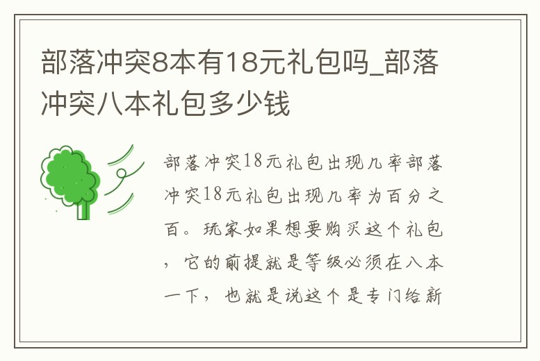 部落沖突8本有18元禮包嗎_部落沖突八本禮包多少錢