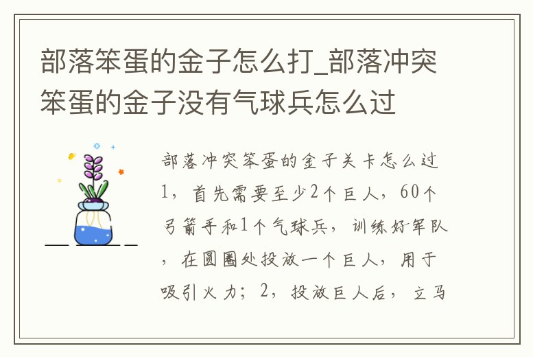 部落笨蛋的金子怎么打_部落沖突笨蛋的金子沒有氣球兵怎么過