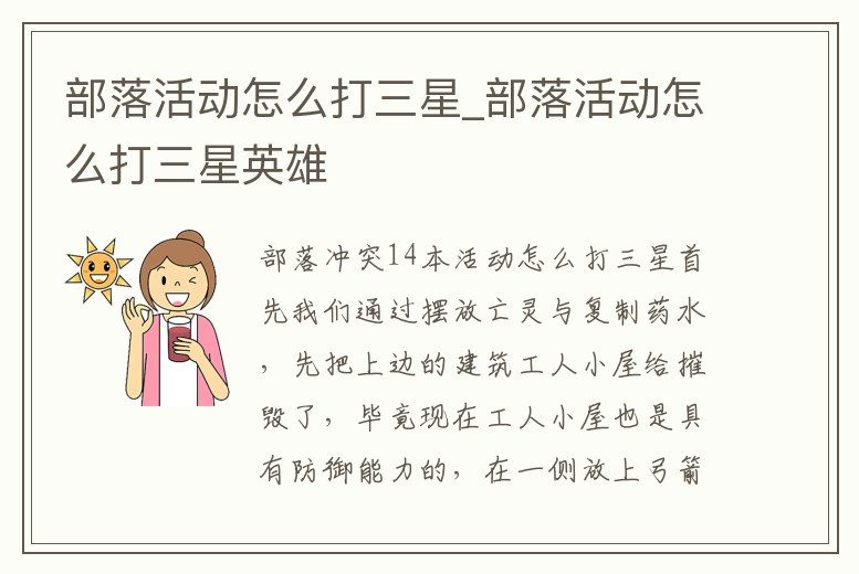 部落活動怎么打三星_部落活動怎么打三星英雄