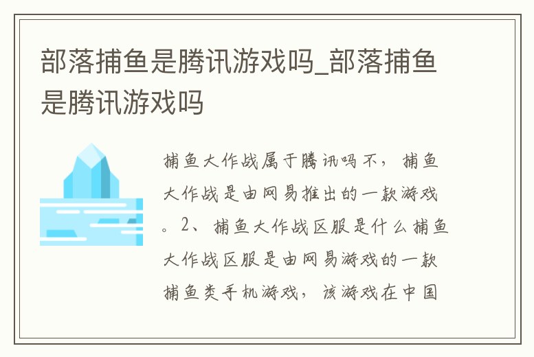 部落捕魚是騰訊游戲嗎_部落捕魚是騰訊游戲嗎