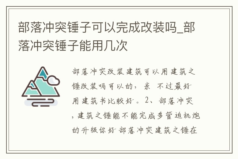 部落沖突錘子可以完成改裝嗎_部落沖突錘子能用幾次