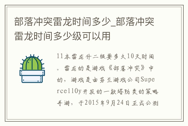 - 部落沖突雷龍時(shí)間多少_部落沖突雷龍時(shí)間多少級(jí)可以用
