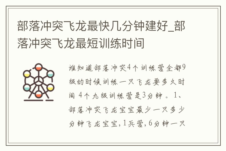 部落沖突飛龍最快幾分鐘建好_部落沖突飛龍最短訓練時間