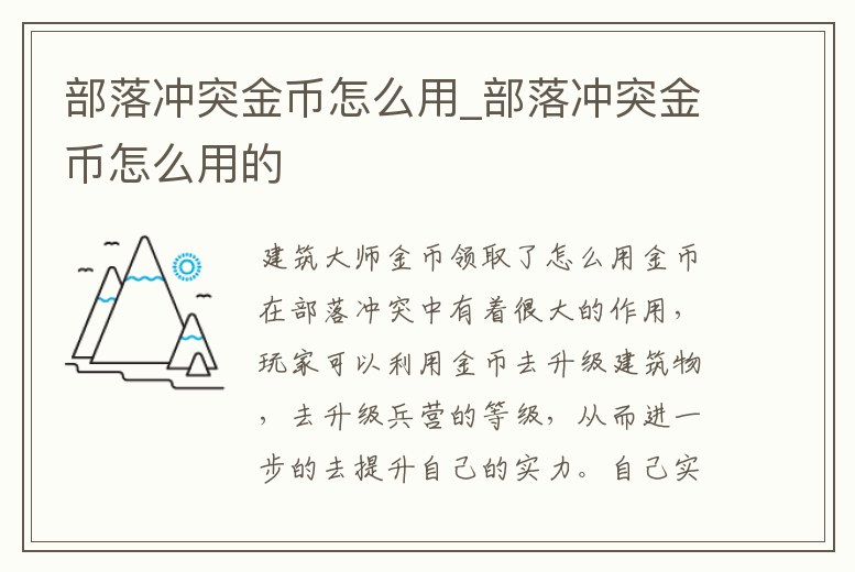 部落沖突金幣怎么用_部落沖突金幣怎么用的