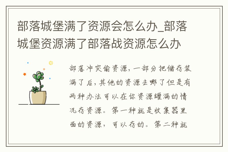 部落城堡滿了資源會怎么辦_部落城堡資源滿了部落戰資源怎么辦
