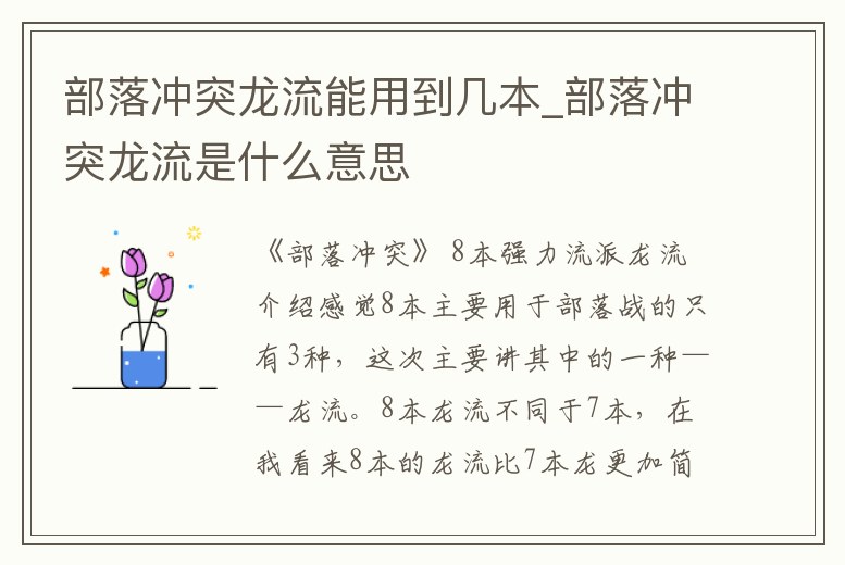 部落沖突龍流能用到幾本_部落沖突龍流是什么意思