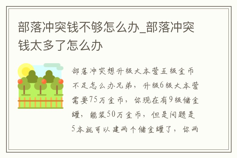 部落沖突錢不夠怎么辦_部落沖突錢太多了怎么辦