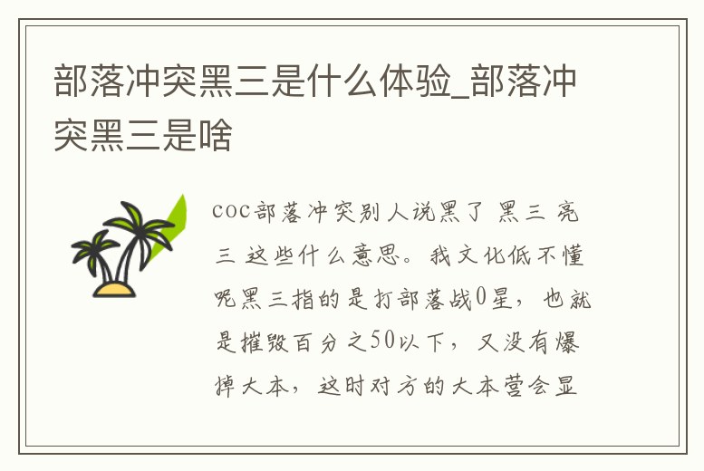 部落沖突黑三是什么體驗_部落沖突黑三是啥