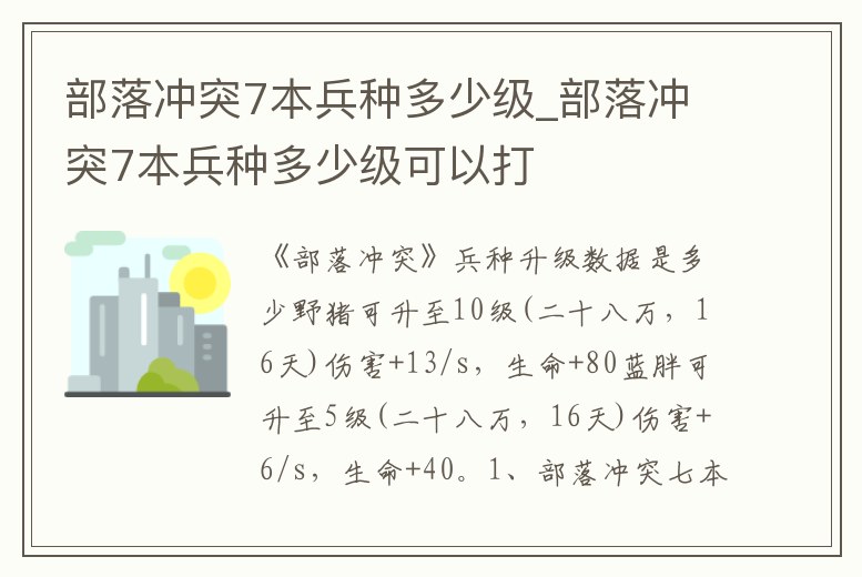 部落沖突7本兵種多少級_部落沖突7本兵種多少級可以打