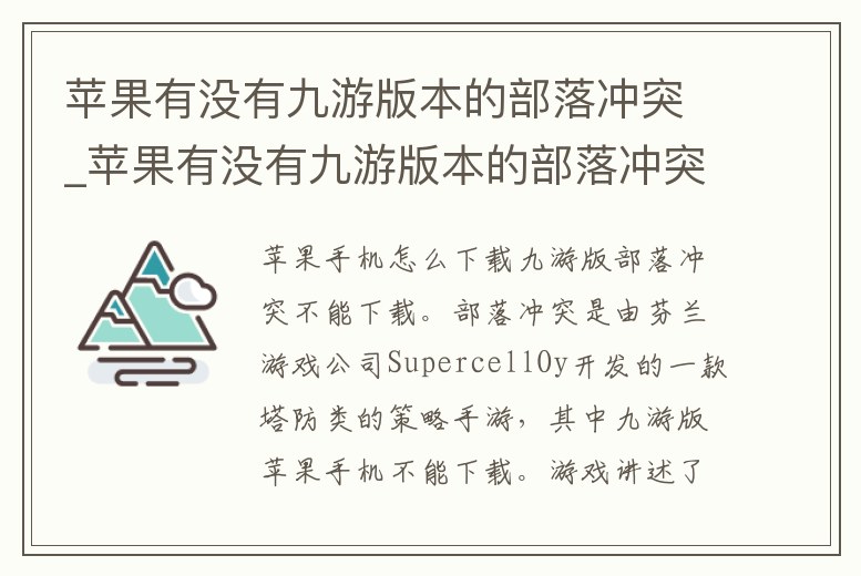 蘋果有沒有九游版本的部落沖突_蘋果有沒有九游版本的部落沖突游戲