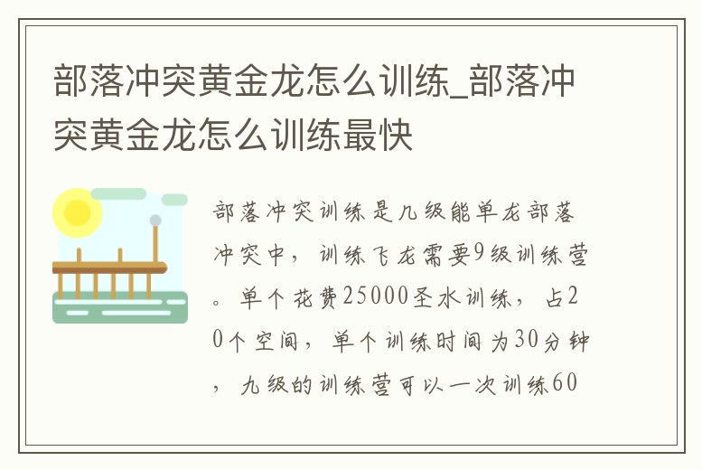 部落沖突黃金龍怎么訓練_部落沖突黃金龍怎么訓練最快