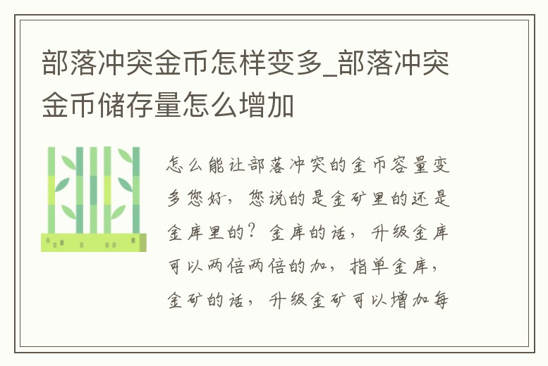 部落沖突金幣怎樣變多_部落沖突金幣儲存量怎么增加