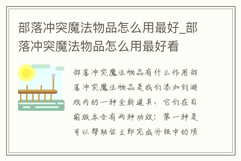 部落沖突魔法物品怎么用最好_部落沖突魔法物品怎么用最好看