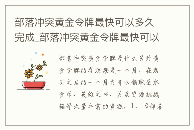 部落沖突黃金令牌最快可以多久完成_部落沖突黃金令牌最快可以多久完成一次