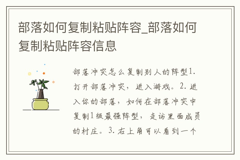 部落如何復制粘貼陣容_部落如何復制粘貼陣容信息