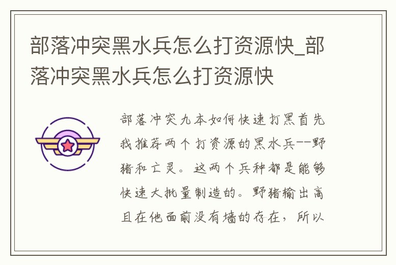 部落沖突黑水兵怎么打資源快_部落沖突黑水兵怎么打資源快