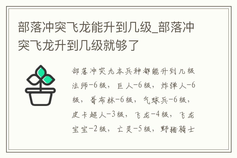 部落沖突飛龍能升到幾級_部落沖突飛龍升到幾級就夠了