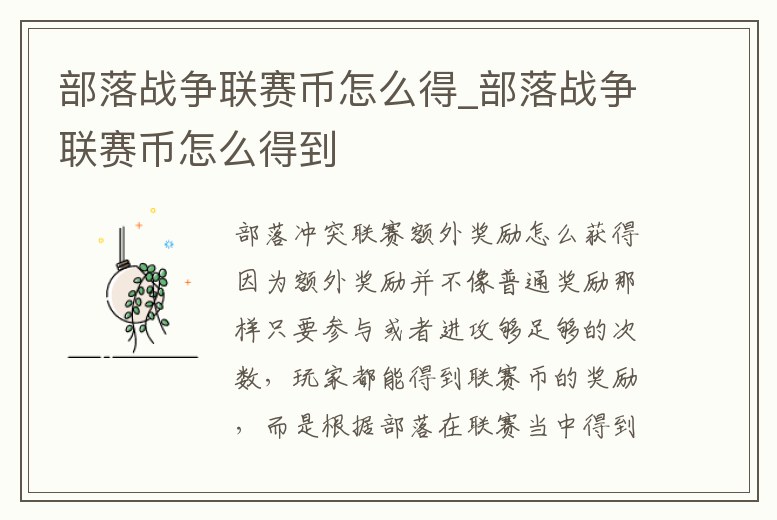 部落戰爭聯賽幣怎么得_部落戰爭聯賽幣怎么得到