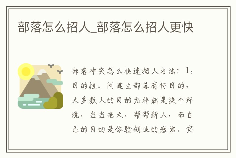 新部落招人的方法有:一是在公眾聊天區發布部落招人信息,某某部落招人,等級不限,常駐部落,捐兵迅速。部落名稱某某。二是在部落沖突游戲交流平臺直接邀請招人。邀請之后等待對方處理,同意之后直接進入部落 。