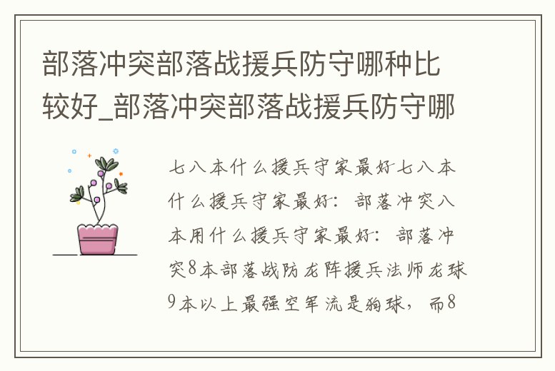 部落沖突部落戰援兵防守哪種比較好_部落沖突部落戰援兵防守哪種比較好一點