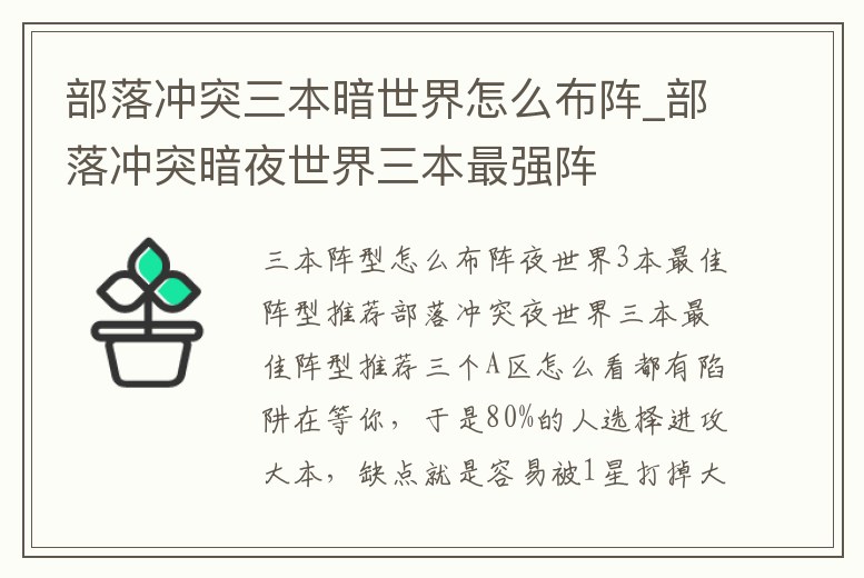 部落沖突三本暗世界怎么布陣_部落沖突暗夜世界三本最強陣