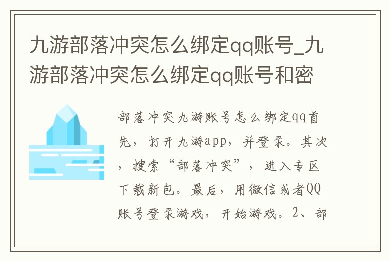 九游部落沖突怎么綁定qq賬號(hào)_九游部落沖突怎么綁定qq賬號(hào)和密碼