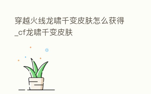 穿越火線龍嘯千變皮膚怎么獲得_cf龍嘯千變皮膚