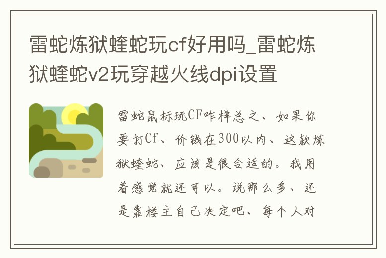 2、雷蛇的煉獄蝰蛇鼠標用來打cf合適嗎