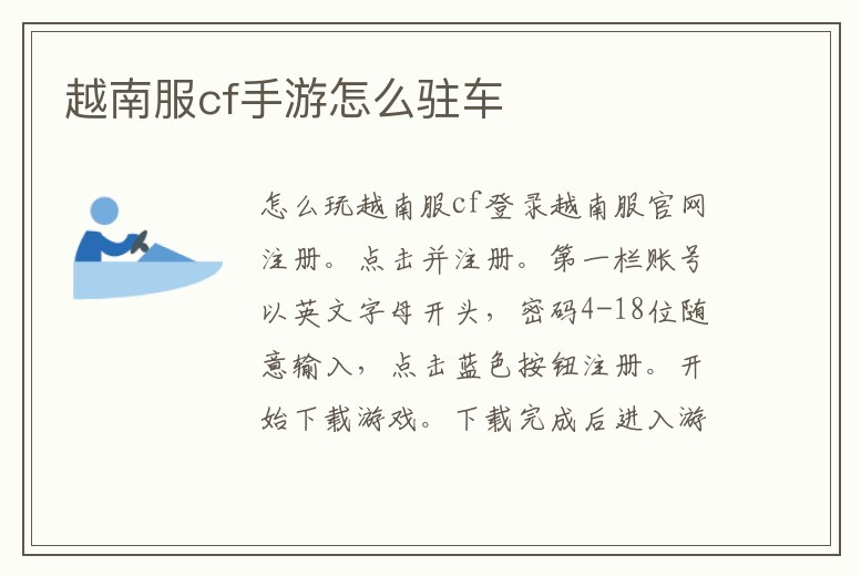 登錄越南服官網注冊。點擊并注冊。第一欄賬號以英文字母開頭,密碼4-18位隨意輸入,點擊藍色按鈕注冊。開始下載游戲。下載完成后進入游戲安裝目錄,打開patcher cf2文件進入游戲。使用剛剛注冊的賬號登錄游。
