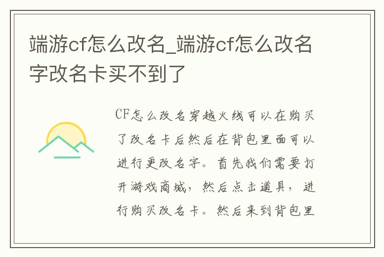 端游cf怎么改名_端游cf怎么改名字改名卡買不到了