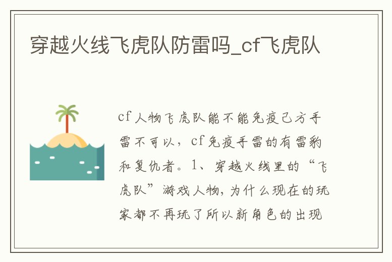 穿越火線飛虎隊防雷嗎_cf飛虎隊