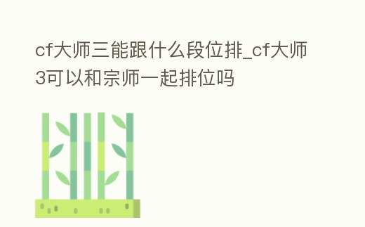 cf大師三能跟什么段位排_cf大師3可以和宗師一起排位嗎