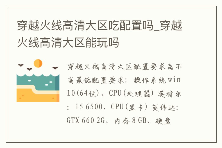 穿越火線高清大區吃配置嗎_穿越火線高清大區能玩嗎
