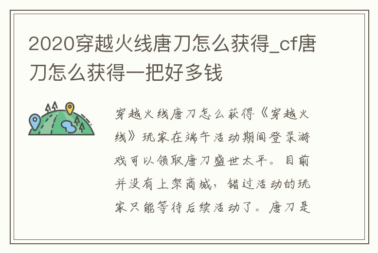 2020穿越火線唐刀怎么獲得_cf唐刀怎么獲得一把好多錢