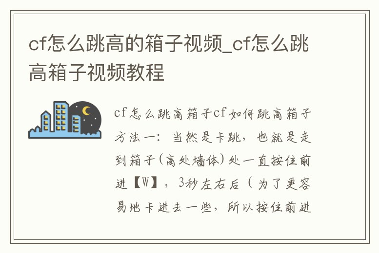 - cf怎么跳高的箱子視頻_cf怎么跳高箱子視頻教程