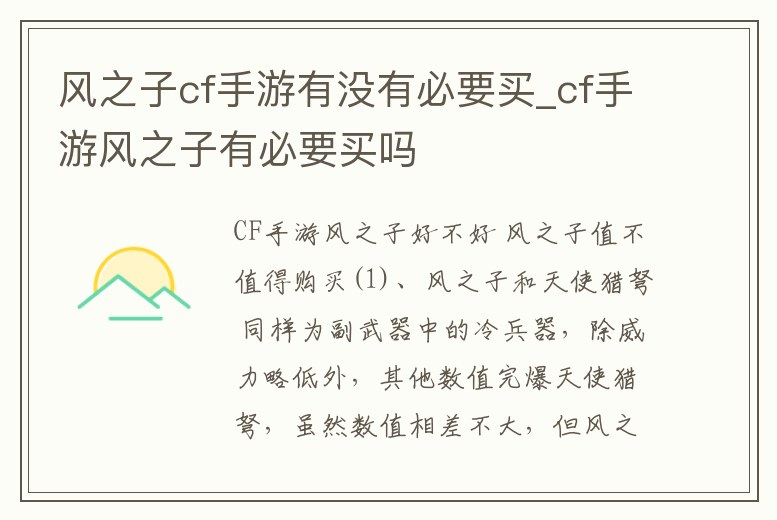 風之子cf手游有沒有必要買_cf手游風之子有必要買嗎
