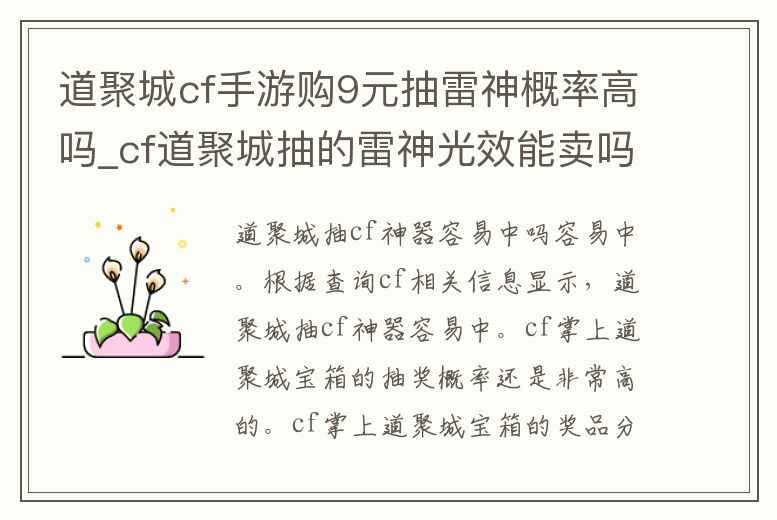 道聚城cf手游購9元抽雷神概率高嗎_cf道聚城抽的雷神光效能賣嗎