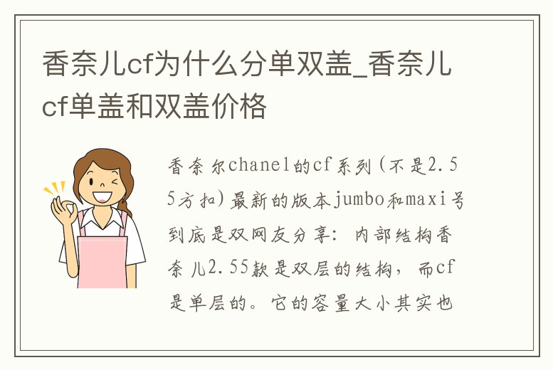 香奈兒cf為什么分單雙蓋_香奈兒cf單蓋和雙蓋價格
