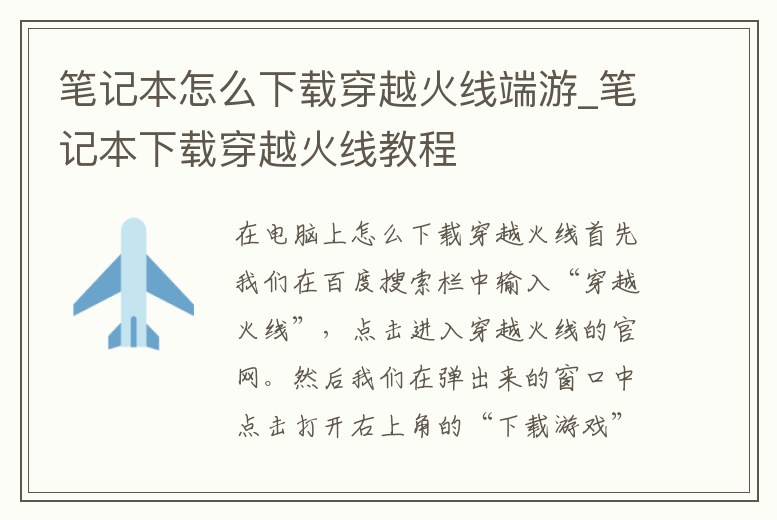 筆記本怎么下載穿越火線端游_筆記本下載穿越火線教程