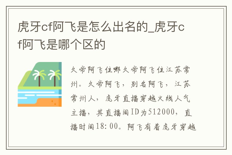 - 虎牙cf阿飛是怎么出名的_虎牙cf阿飛是哪個(gè)區(qū)的