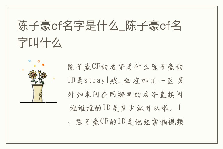 - 陳子豪cf名字是什么_陳子豪cf名字叫什么