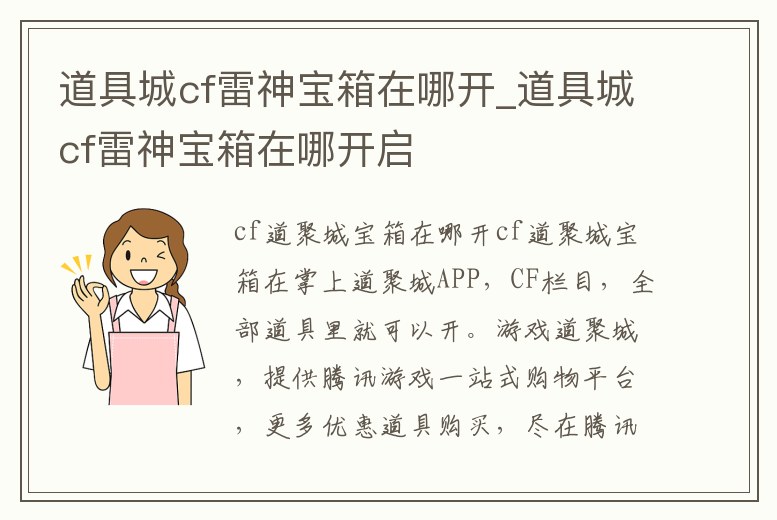 道具城cf雷神寶箱在哪開_道具城cf雷神寶箱在哪開啟