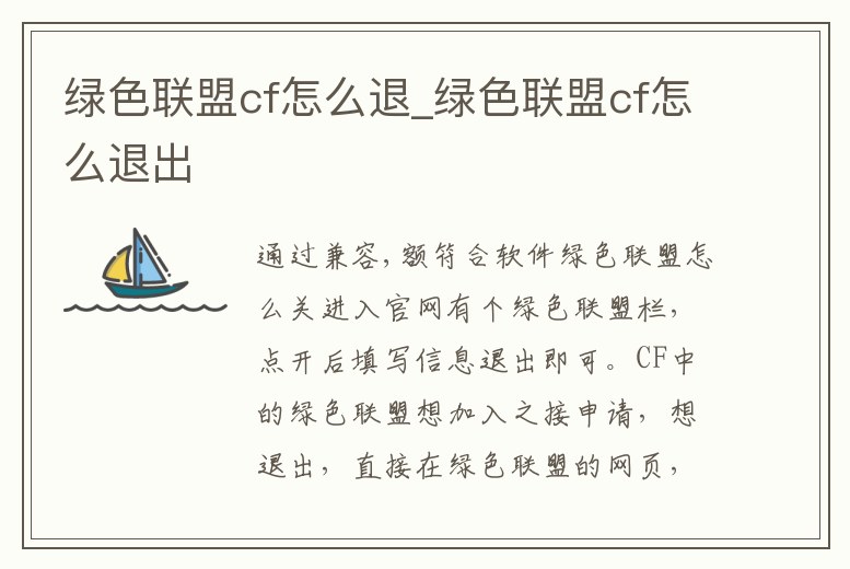 進入官網有個綠色聯盟欄,點開后填寫信息退出即可。CF中的綠色聯盟想加入之接申請,想退出,直接在綠色聯盟的網頁,點擊退出綠色聯盟。綠色聯盟是游戲穿越火線里的一個系統。玩家符合條件即可加入。