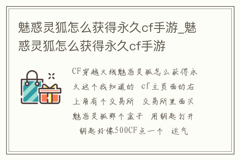 魅惑靈狐怎么獲得永久cf手游_魅惑靈狐怎么獲得永久cf手游