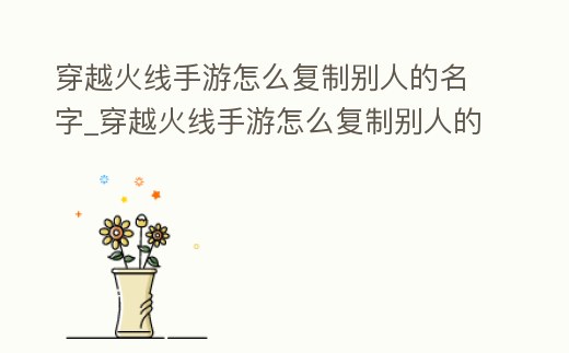 - 穿越火線手游怎么復(fù)制別人的名字_穿越火線手游怎么復(fù)制別人的名字ID